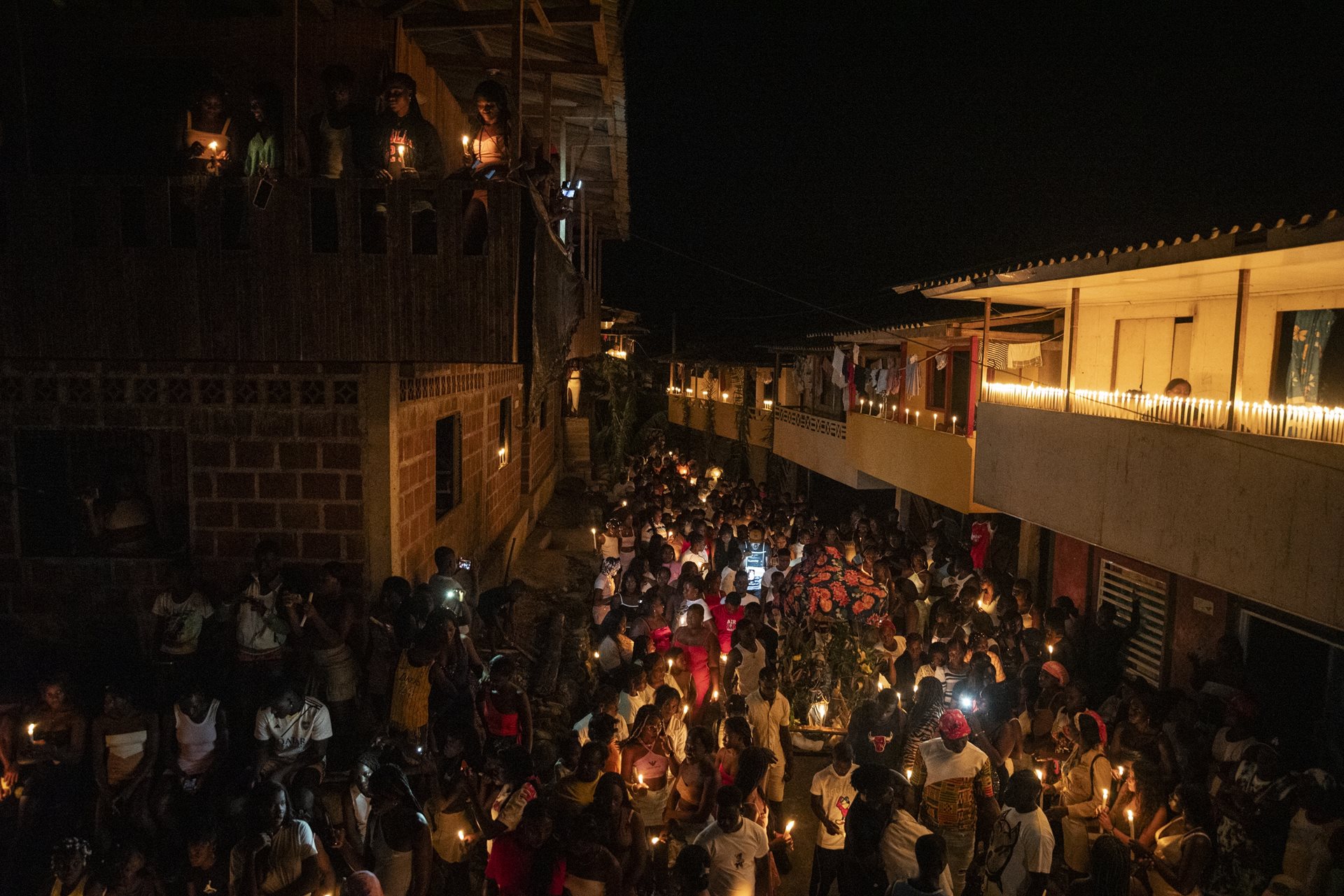 Juntas is an Afro-descendant community deep in the Colombian Pacific rainforest, accessible only by a ten-hour boat journey up the Yurumanguí River. Settled by descendants of enslaved Africans brought to the region in the 1700s, the community faces threats from illegal mining, logging, and armed conflict. Fiesta de los Manacillos is a traditional ritual enacted by the community during Holy Week activities that blends Catholicism with African spiritual traditions. More than just a celebration, the festival is a homecoming for a diaspora, representing a profound affirmation of cultural resilience.